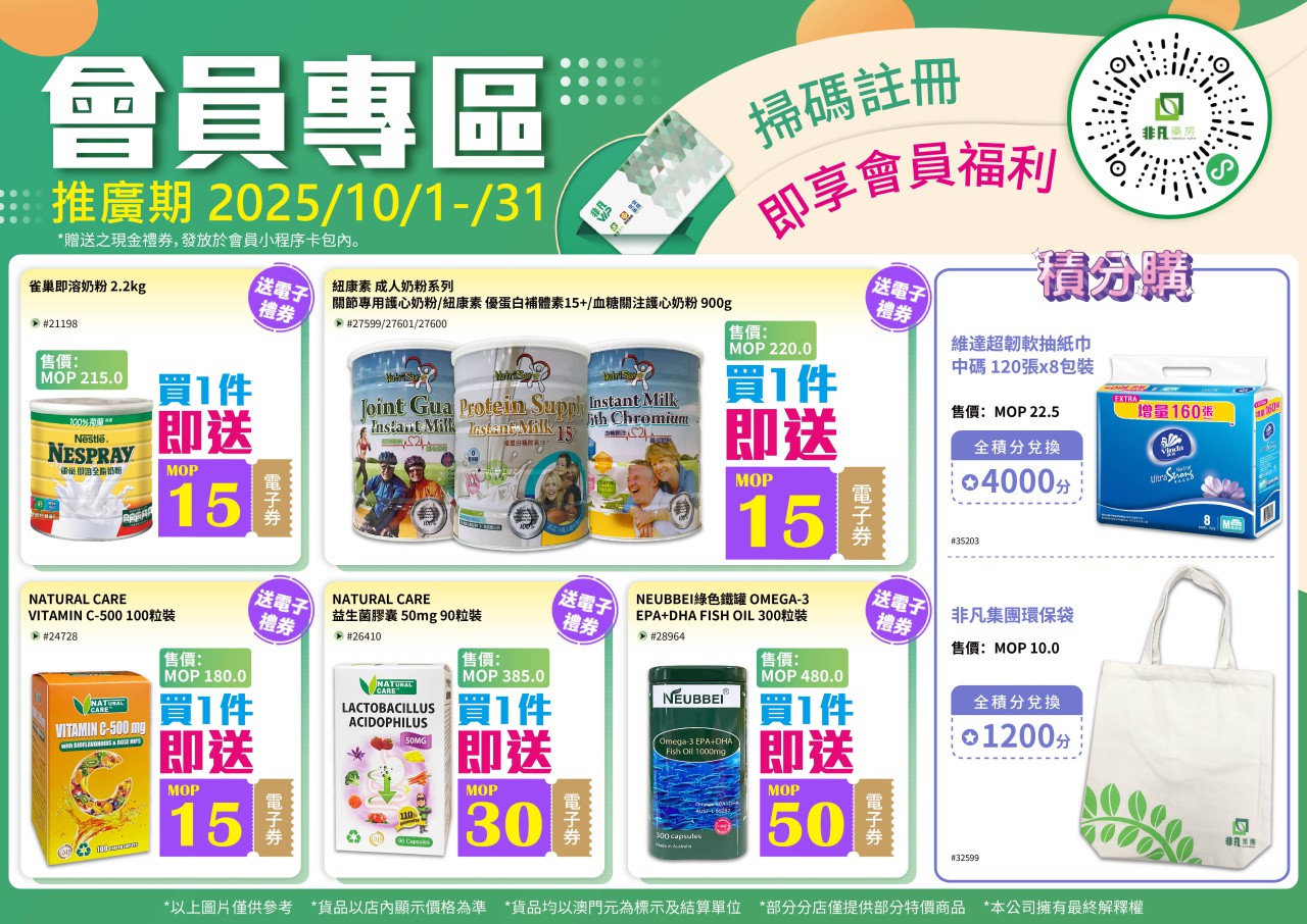 仲沒成為我哋會員嘅朋友仔們, 記得快嚟登記成為我哋嘅會員啦~除咗購物可以儲積分,仲有超抵產品積分購,微信搜索「非凡集團會員中心」小程序,加入會員即可享受專屬優惠價格啦!每日仲可以簽到領積分喔!!!