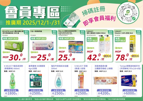 ▲853 非凡特別版白色口罩 30片/盒會員優享MOP30.0